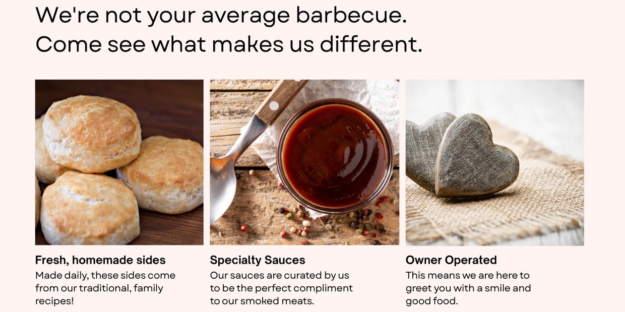 FROM THE SLOW-SMOKED MEATS TO THE HOME-COOKED SIDES, EVERY DISH IS CRAFTED WITH CARE, TRADITION AND A WHOLE LOT OF HEART.